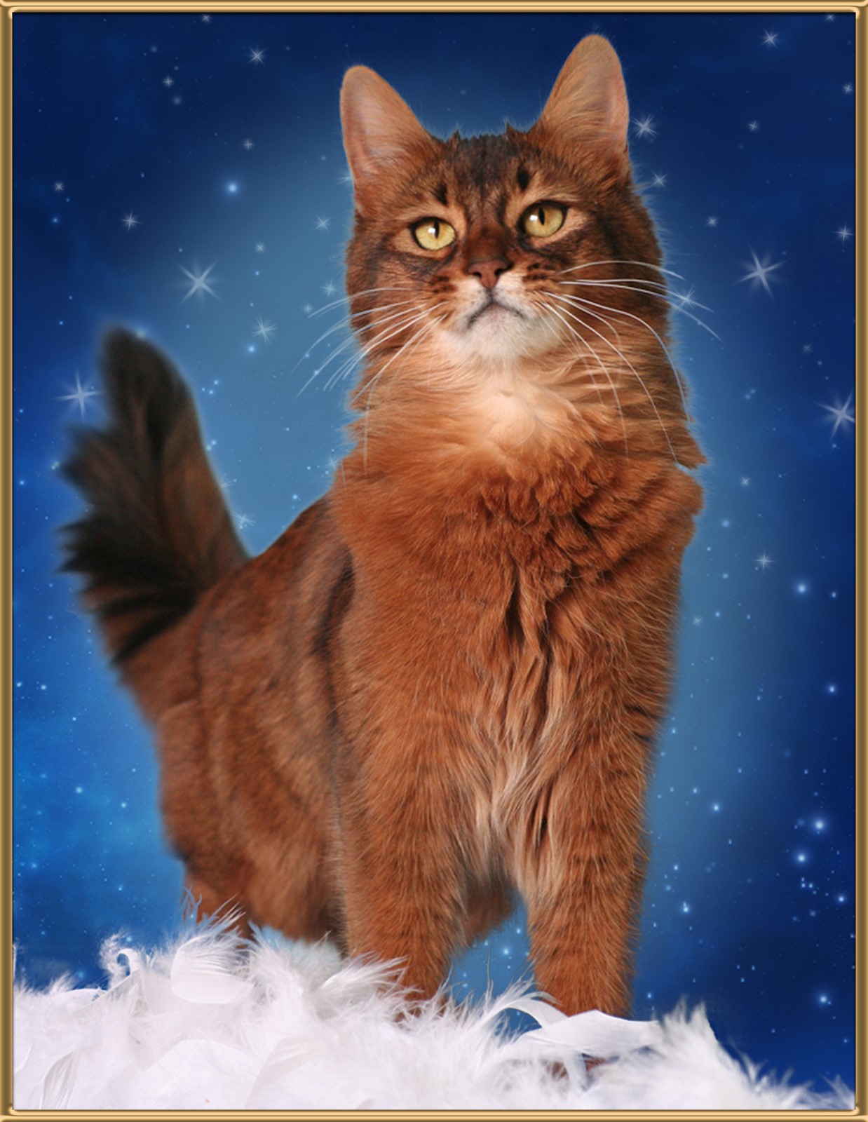 Le Somali a conquis notre cœur par sa présence si particulière : il possède l'agilité légendaire et la vivacité de l'écureuil, alliées à la robe flamboyante et à l'allure sauvage du renard.