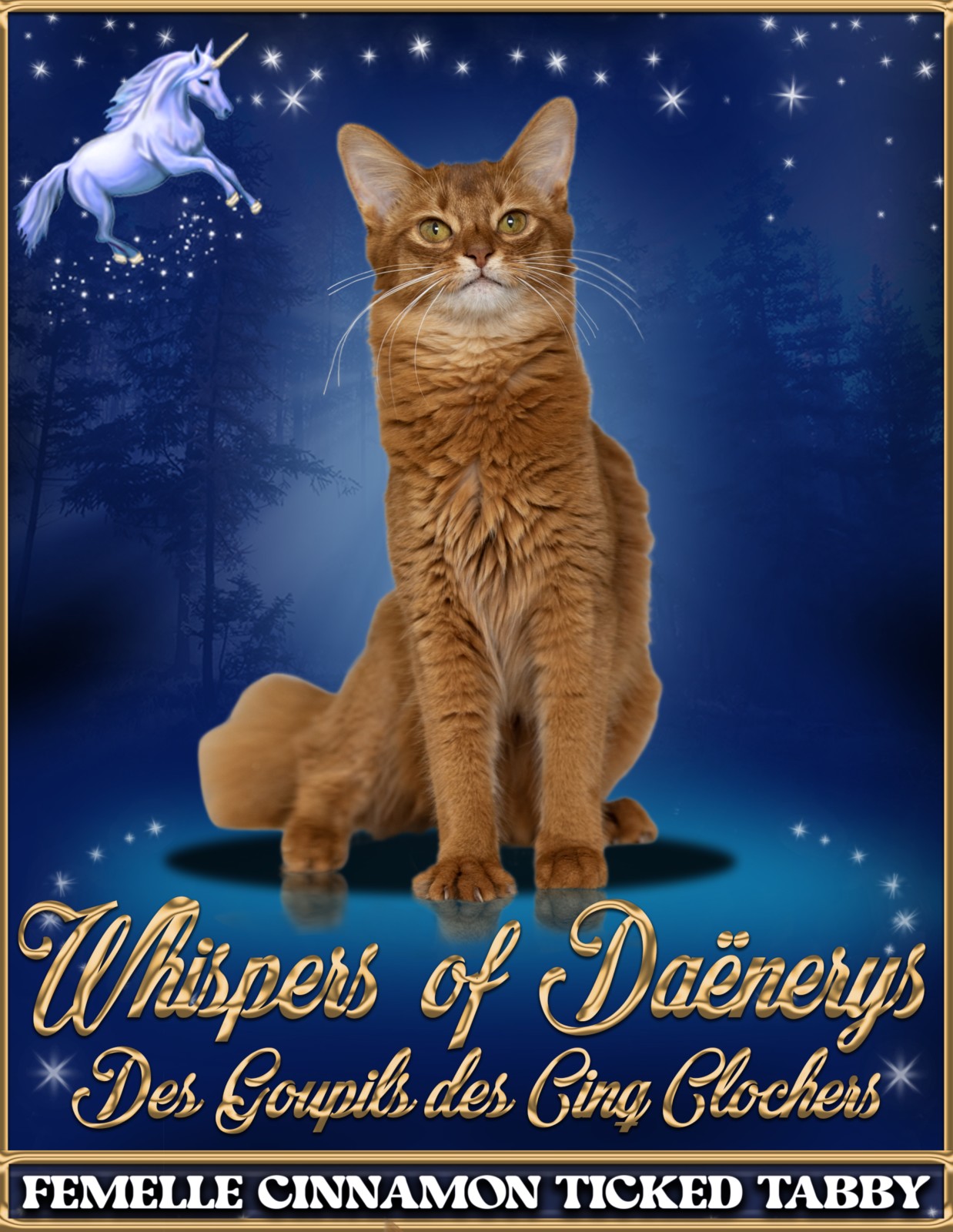 ✨ 📜 Le secret de son nom : Son nom, Whispers of Daënerys, signifie "Les Murmures de Daënerys". Elle est notre Mère des Dragons, une figure de force et de majesté qui règne avec amour sur notre foyer.