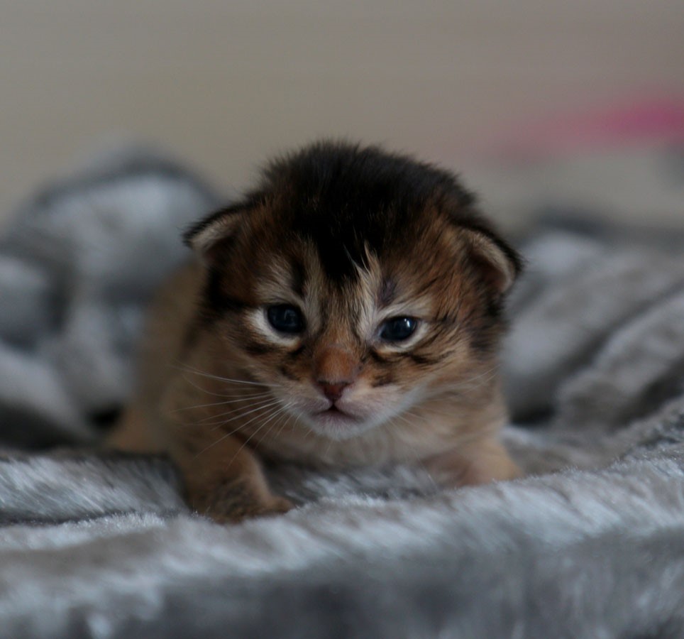 Freyja, est une petite chatte pleine de malice ! Elle est la fille de notre douce Miley et de Teegän Morningstar et nous comble de bonheur.