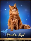 Devil est un chat mais alors des plus adorable , le seigneur de ces demoiselles. Jamais un coup de patte, il s'écrase littéralement devant tout le monde. En revanche avec les autres mâles , c'est une autre affaire. Un vrai tonton avec les chatons il se laisse faire armé d'une patience angélique. Il supportait mal la vie de mâle entier nous l'avons donc castré très jeune. Il coule des jours heureux en maitre chat et veille sur son harem...