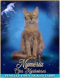 Nymeria est une chatte râleuse : pour avoir des câlins. Elle aime se lover sur moi et me saute dans les bras. Charmeuse elle vous sauteras sur vos épaules. Elle est la fille de Nivanka et Mingo. Son prénom est le nom d'une louve.