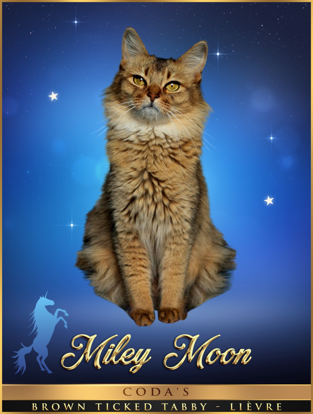 Gilanëa est la fille de Delhys et Feänor. Elle représente tout pour moi , ma fusion. "Mon chat.. ". Elle est le chat qu'on a une relation extraordinaire une fois dans sa vie , même si tout nos autres animaux sont extrêment aimés et choyés. Elle est née à la maison , la 1ère de la chatterie "La Magie des Licornes" à rester parmi nous.