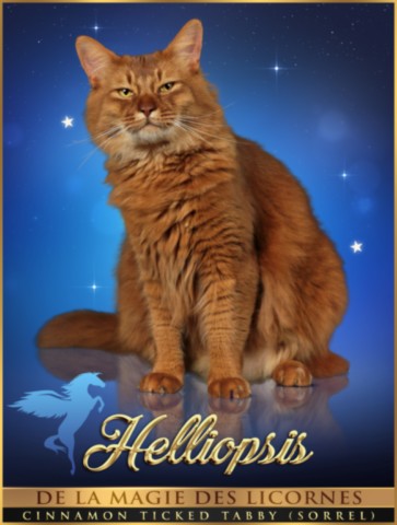 Helliopsis c'est un chamallow tout tendre et un prince au coeur pur et à l'âme de chaton. Il aime grimper sur les épaules et avoir son câlin en se frottant à nous. Son prénom est le tournesol , "soleil" pour papa Héllios et "fleur" pour sa mère Belladonna et un soupçon de sorcières. Il vit dans une super famille qui le couve comme un coq en pâte.